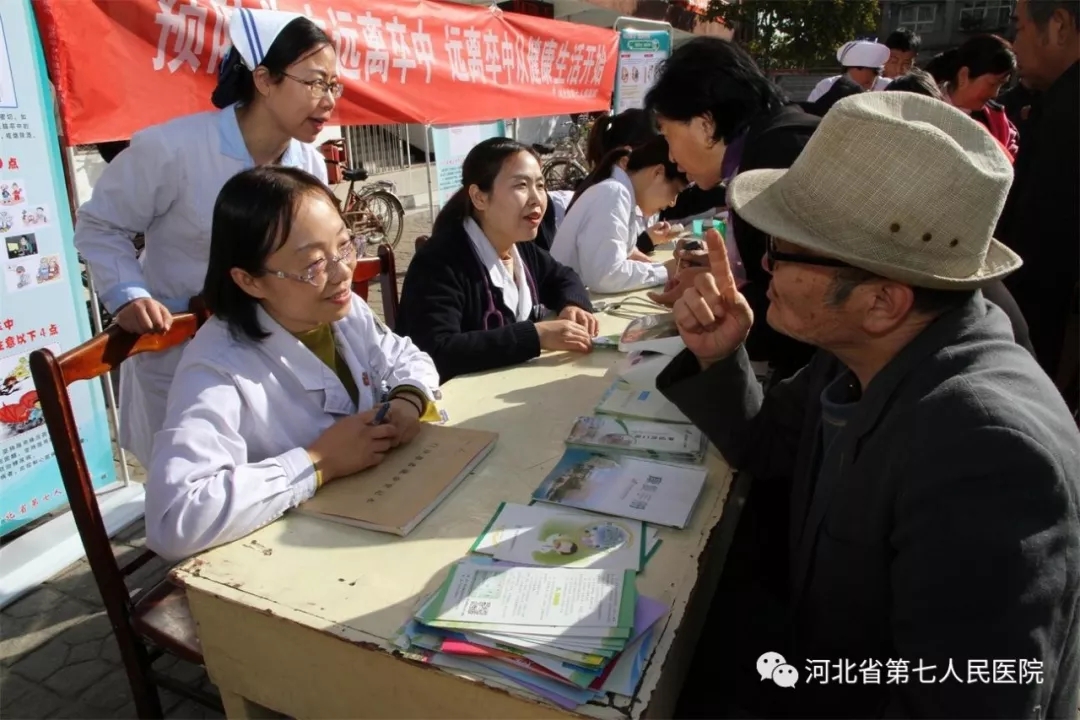 为宣传心脑血管疾病防治知识,提高公众健康意识,10月29日上午,副院长任志学带队,医务处组织神经内一科、神经内二科、康复科、检验科、健康促进办公室等10名医护人员在长胜园社区举办脑卒中防治健康教育和科普宣传活动。