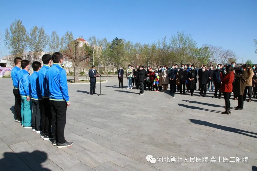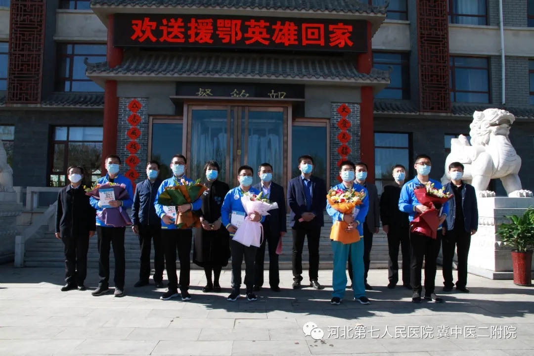 省七院党委书记安树章主持仪式。他说,两家医院的5名医生2月19日逆行出征、紧急驰援武汉,先后在武汉红十字会医院、雷神山医院救治新冠肺炎病人,历时29天,以命相搏,出色完成了医疗救治任务,向党和人民交出了一份满意的答卷。3月20日从武汉回到定州在灿美酒店调养休整,经过全面体检、三次咽拭子检测、14天的隔离观察后,身体完全正常,今日回家和家人团聚,希望大家好好休息、调理身心、养精蓄锐,以更加昂扬的斗志、更加饱满的状态投入到新的工作生活中去。