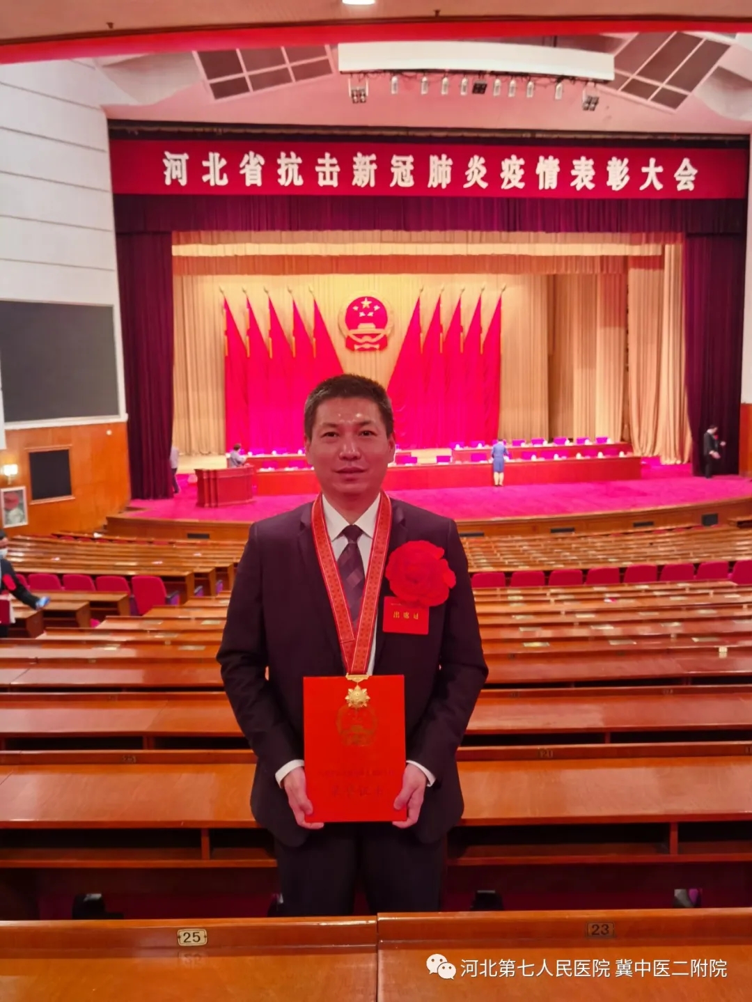 10月16日上午9:30,在省会石家庄河北会堂召开的河北省抗击新冠肺炎疫情表彰大会上,我院援鄂抗疫英雄赵向辉喜获“河北省抗击新冠肺炎疫情先进个人”荣誉称号,并作为医生代表上台接受省领导颁奖。.jpg)