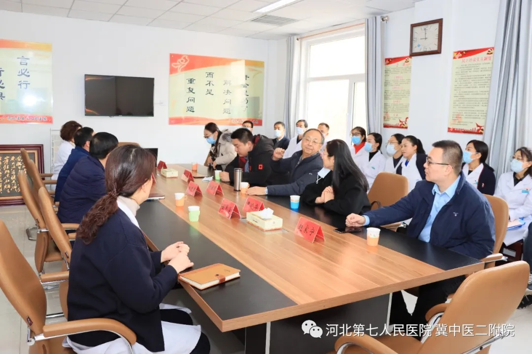 12月26日,河北省中医院副院长赵宝玉,带领省中医院医务处副处长曹勇、医务处副处长赵家宁、护理部主任尹晓华、药学部副主任程杰一行5人莅临我院就三级甲等中西医结合医院等级评审进行交流指导,我院党委书记安树章、院长杨永利、副院长任志学及相关职能部门、临床科室对接人员出席交流会。.jpg)