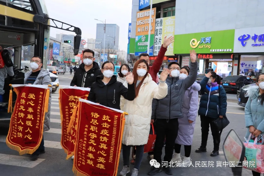 2月8日(腊月27日),4690人的采集任务结束后,省七院15名医护人员16:00从藁城出发返乡。定州市领导、院领导到京港澳高速路口迎接,热烈欢迎白衣勇士平安凯旋。