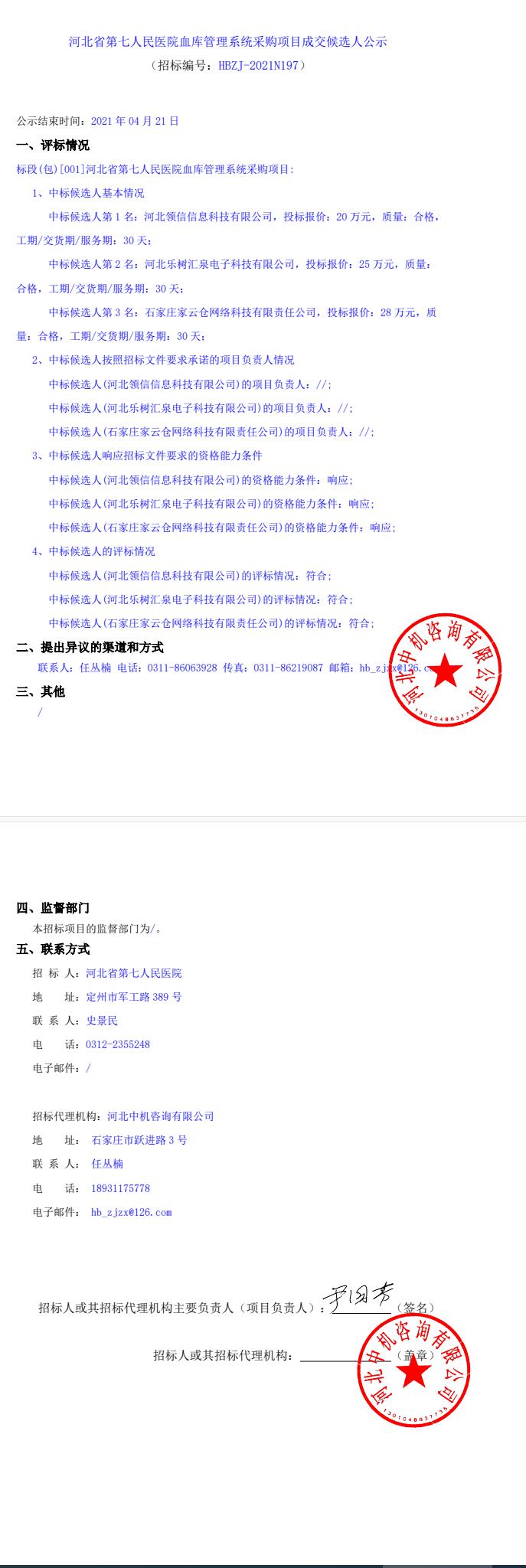 > 医院动态 > 血库管理系统采购项目成交候选人公示