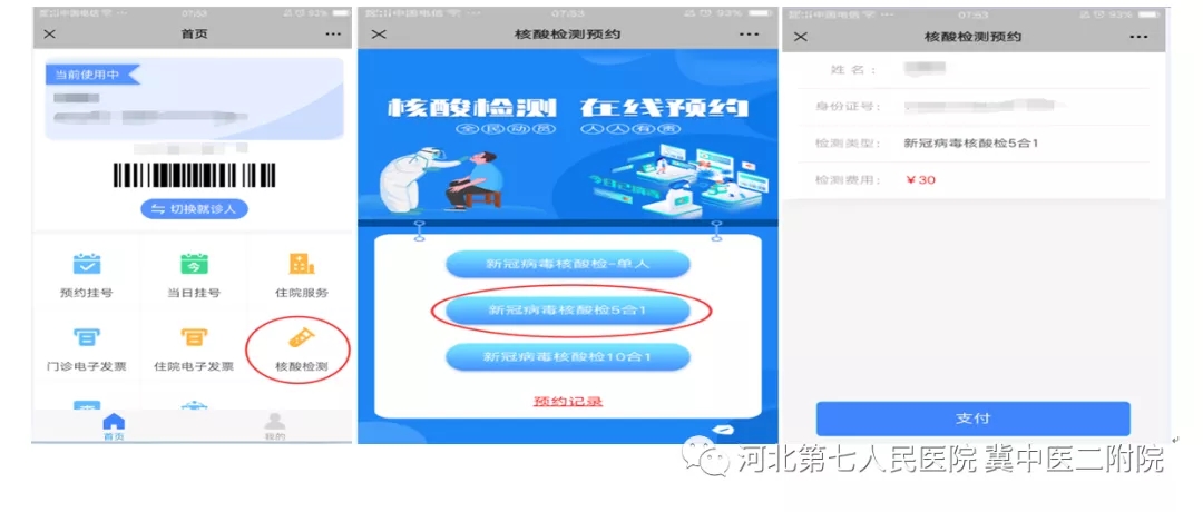 8月10日,根据群众采集核酸的需求,为缩短核酸采集人员等待时间,提高工作效率,医院信息管理处借助“银医通平台”,取消了身份证登记的环节,无需挂号,直接通过手机预约采集核酸。具体步骤如下(共5步):