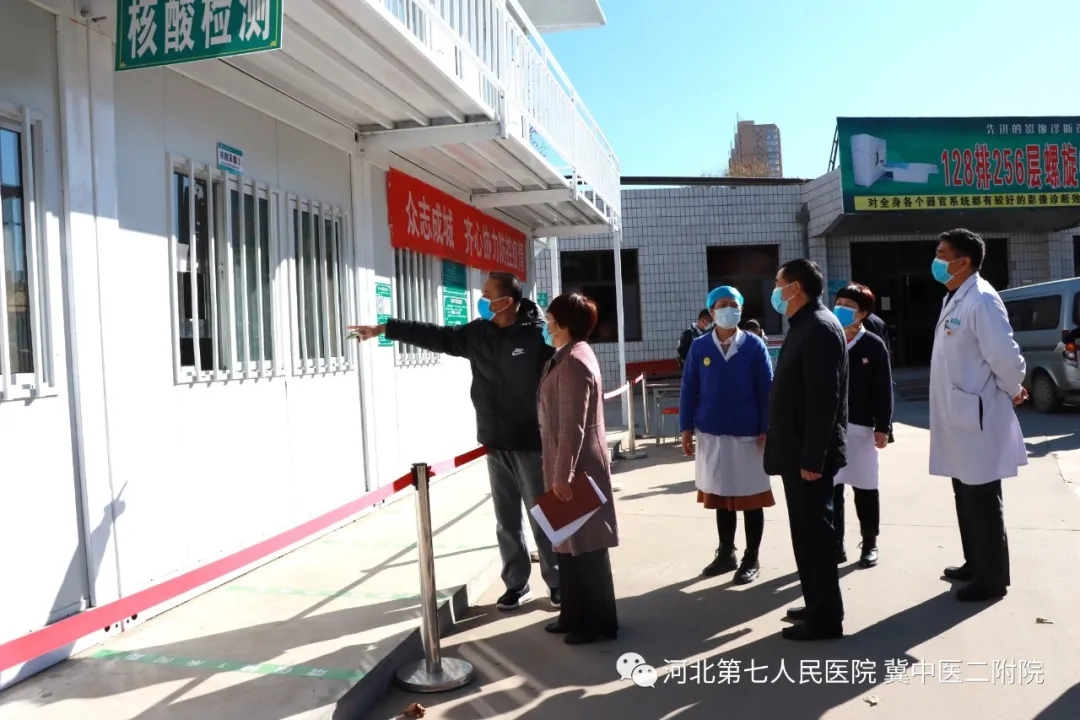 11月11日,定州市卫健局副局长刘淑芳到省七院督导检查疫情防控工作。党委书记安树章、副院长耿清峰及相关科室负责人陪同检查。.jpg)