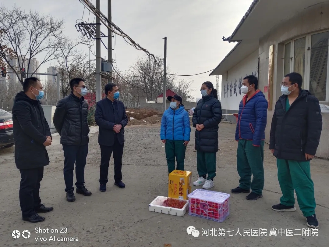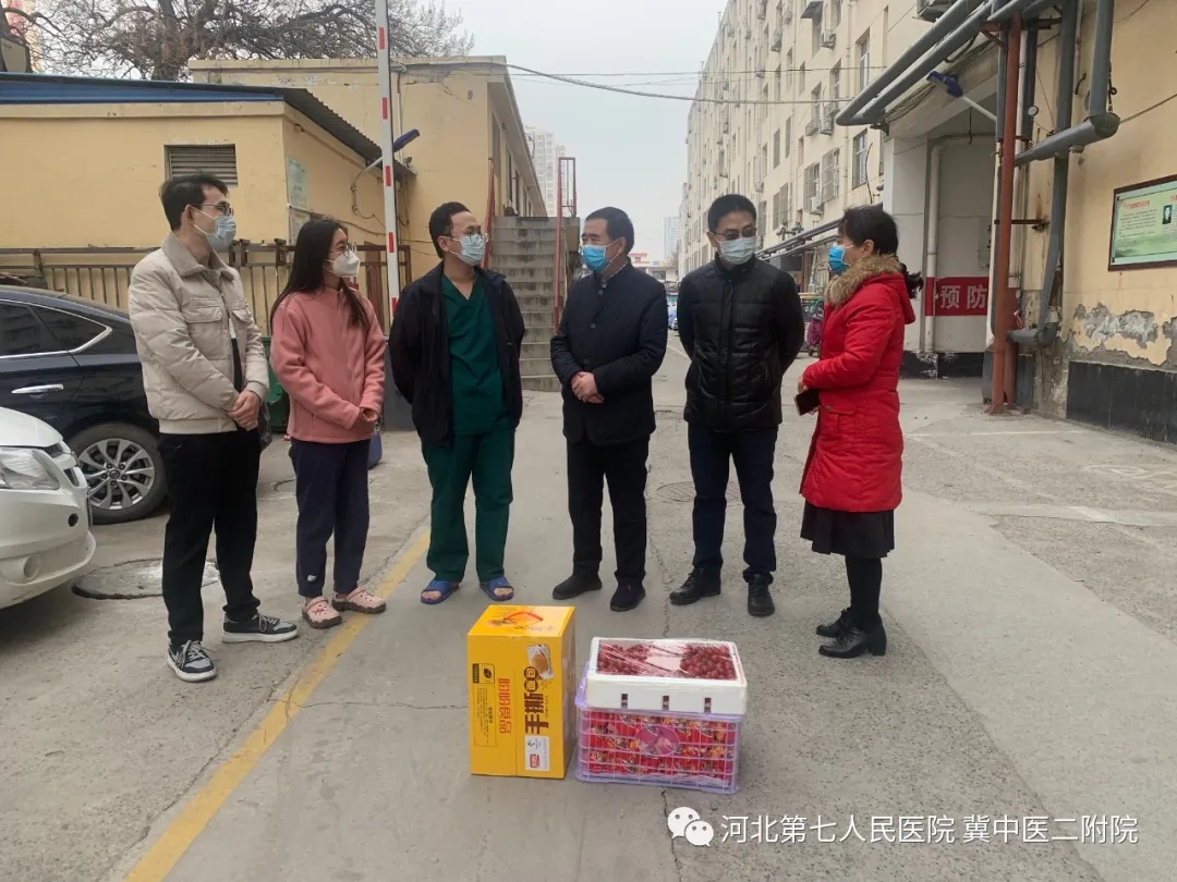 12月15日上午,党委书记安树章、副院长耿清峰、护理部主任曹国贞、医务处刘向辉到狄希酒店、蓝海酒店、格林豪泰酒店看望我院医护人员。我院在隔离酒店的医护人员大部分派驻时间超过1.5个月,有的已经派驻2个月。