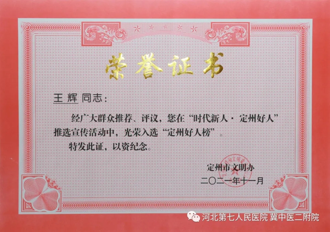 省七院支援深泽、转战辛集的负压救护车司机李新功和药剂科王辉荣获 “时代新人·定州好人”荣誉称号,光荣入选“定州好人榜”。