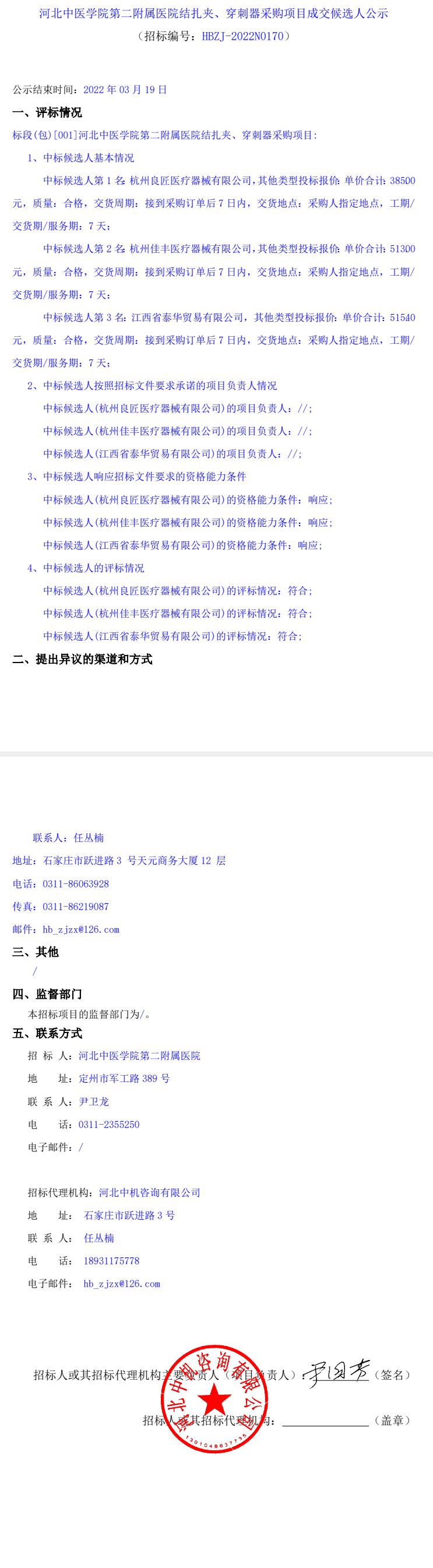 结扎夹、穿刺器采购项目成交候选人公示
