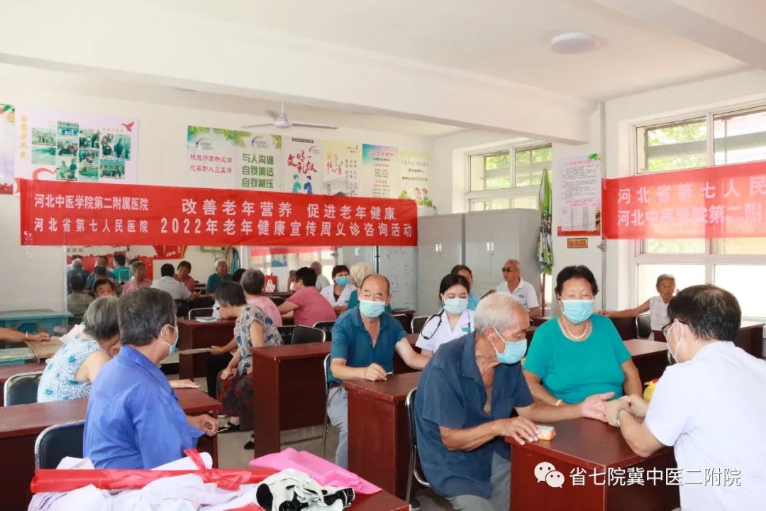 为提高社区老年居民均衡营养、科学饮食意识,我院保健科联合服务办、医联部、宣传处、老年病科、治未病科、心血管病科、脾胃病科医护人员于7月29日15:00在长胜园小区内开展了以“改善老年营养,促进老年健康”为主题的老年健康宣传周义诊、咨询及健康大讲堂活动。