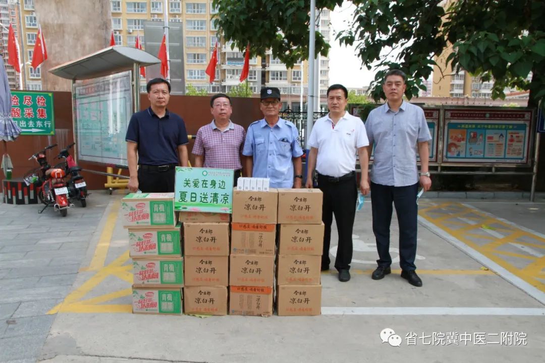 院党委书记杨永利,副书记、院长王鹏,纪委书记任志学,党办室主任刘永刚,工会副主席、院办室主任郝建英分别到物业公司、食堂、总务处、洗衣房、保健科、门诊(含门诊预检分诊)、停车场管理公司、发热门诊、大门口预检分诊点、定州西高速口核酸采集点等高温作业的重点部门送上防暑降温物资及真切关怀,给闷热的天气带来一丝凉意。.jpg)