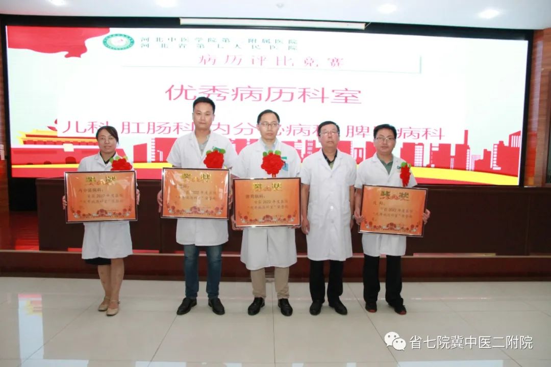 优秀病历科室4个:儿科、肛肠科、内分泌病科、脾胃病科
