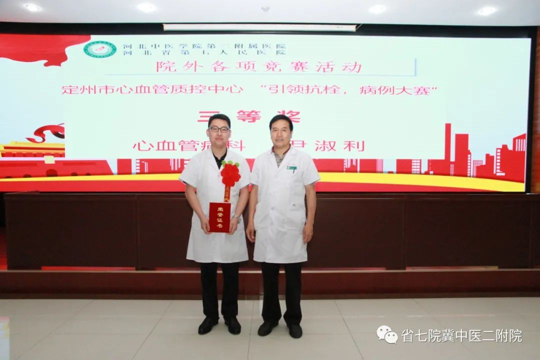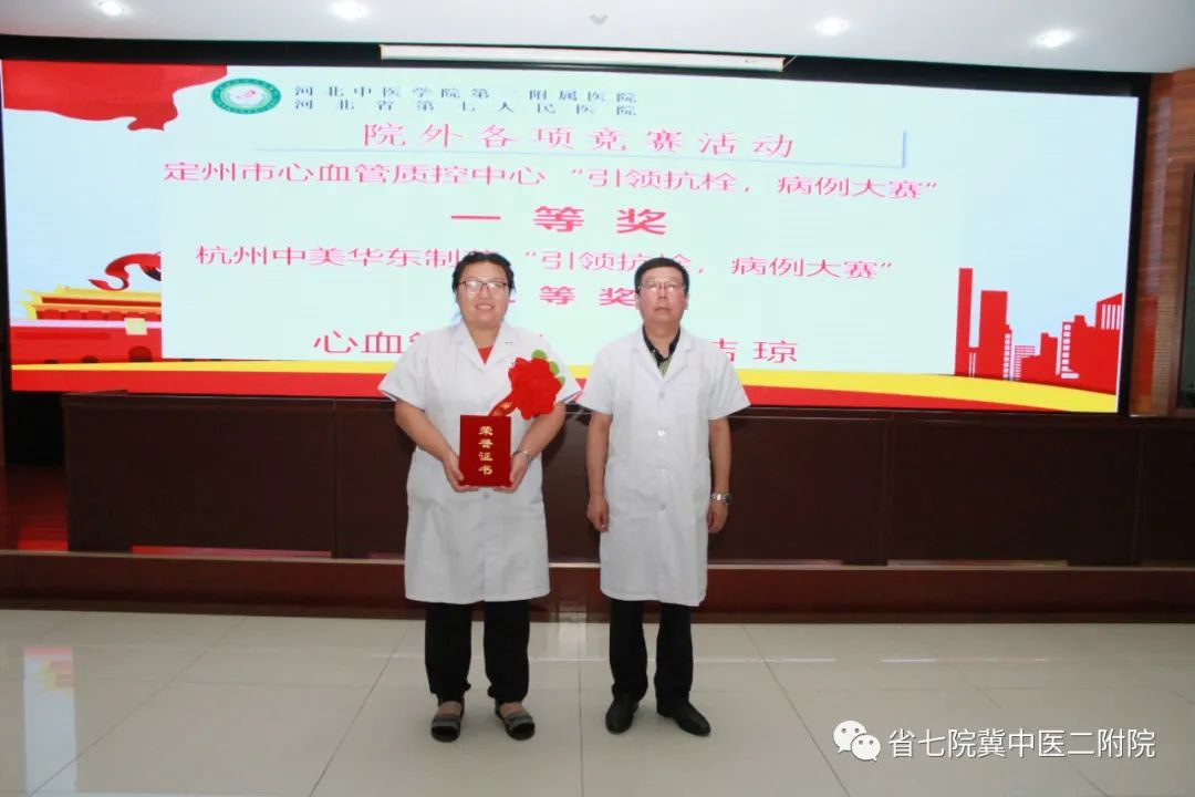 在定州市心血管质控中心举办的“引领抗栓,病例大赛”中荣获一等奖以及杭州中美华东制药有限公司“引领抗栓,病例大赛”三等奖