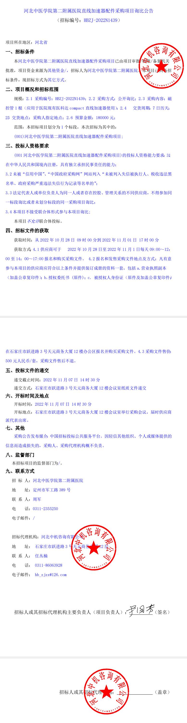 直线加速器配件采购项目询比公告