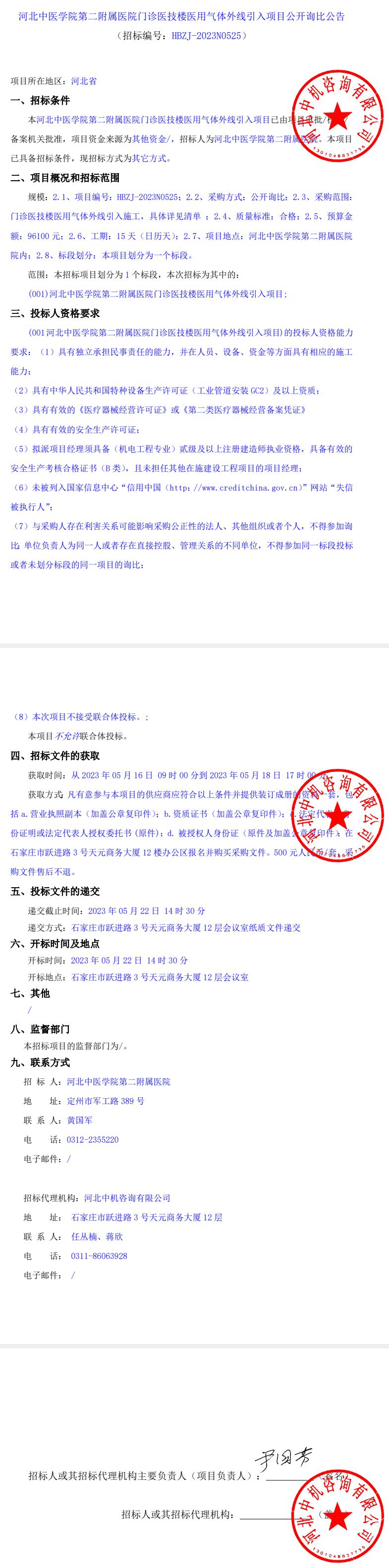 门诊医技楼医用气体外线引入项目公开询比公告