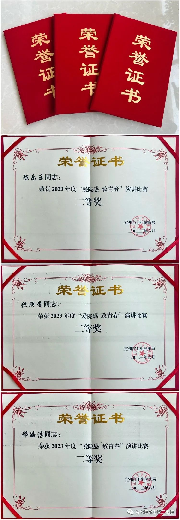 6月5日,我院院感办主任陈乐乐和纪朋曼、邢皓洁参加了定州市卫生健康局组织的2023年度“爱院感 致青春”演讲比赛,经过激烈的角逐,她们三人以优异成绩荣获二等奖。.jpg)