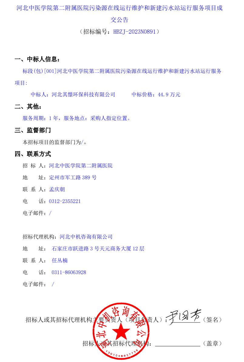 > 医院动态 > 污染源在线运行维护和新建污水站运行服务项目成交公告