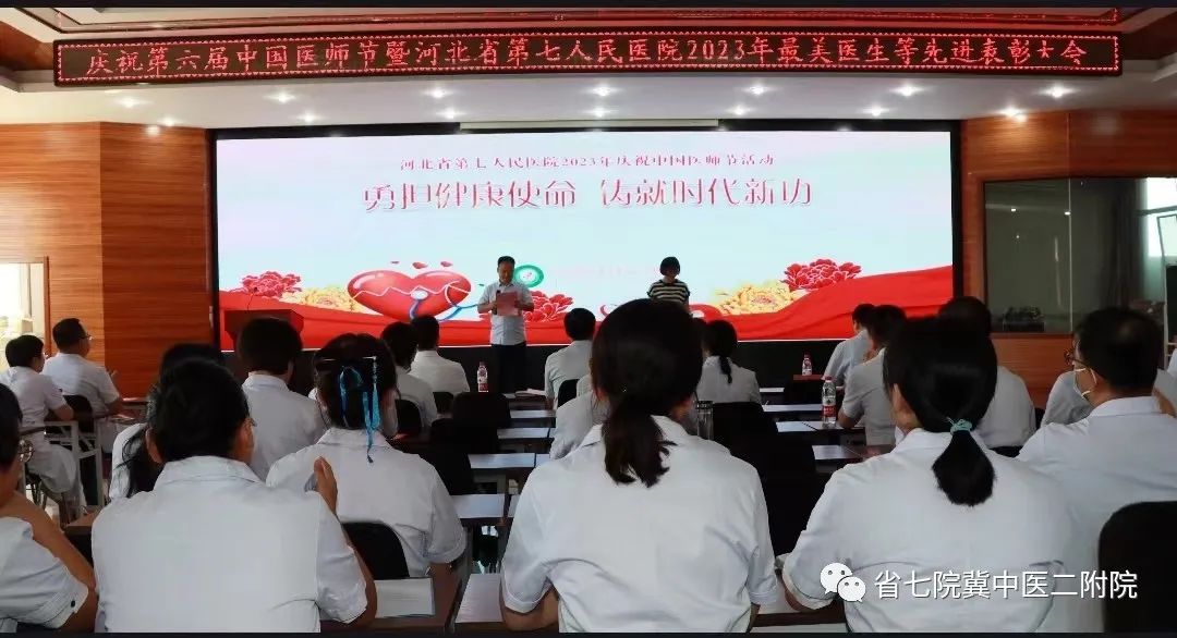 夏末秋初,金风渐至,在第六个“中国医师节”到来之际,我院举行以“勇担健康使命,铸就时代新功”为主题的庆祝活动,院党委书记杨永利,院长王鹏,副院长任志学、耿清峰参加活动。这是一次优秀医生表彰盛典,也是展示和弘扬中医药文化的良机。.jpg)