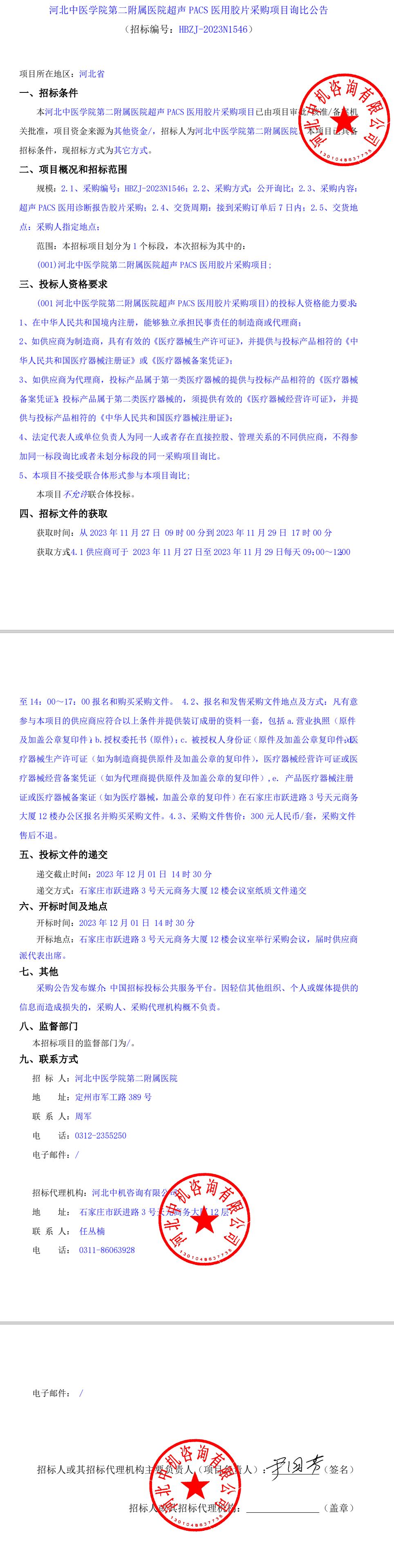 超声PACS医用胶片采购项目询比公告