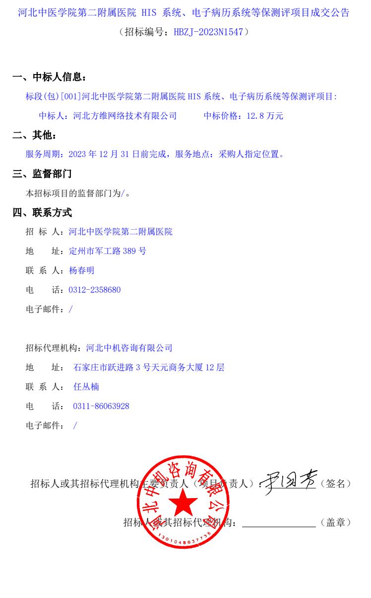 > 医院动态 > HIS系统、电子病历系统等保测评项目成交公告