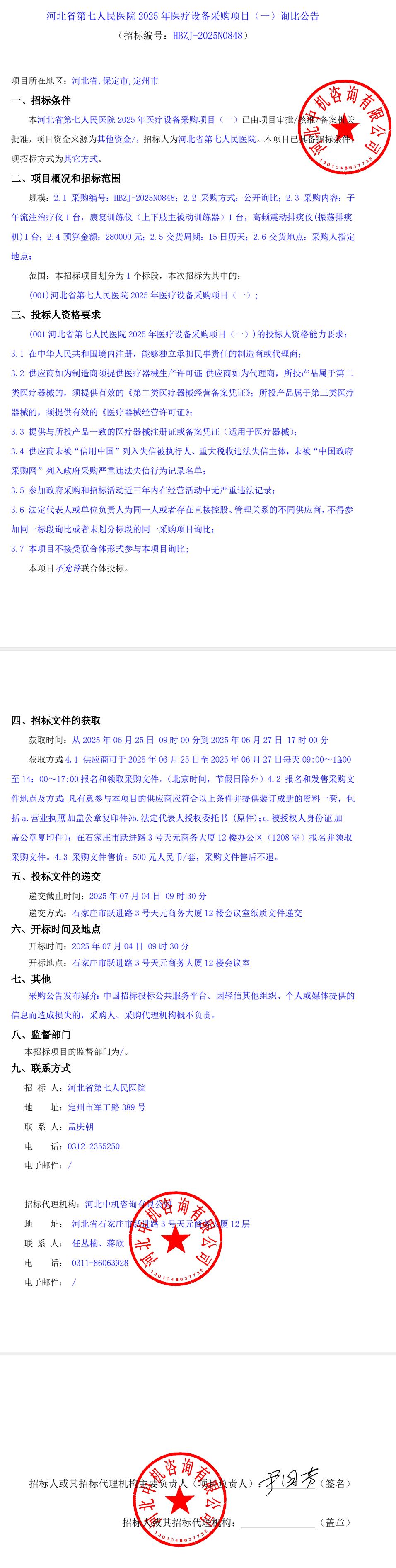 2025年医疗设备采购项目(一)询比公告