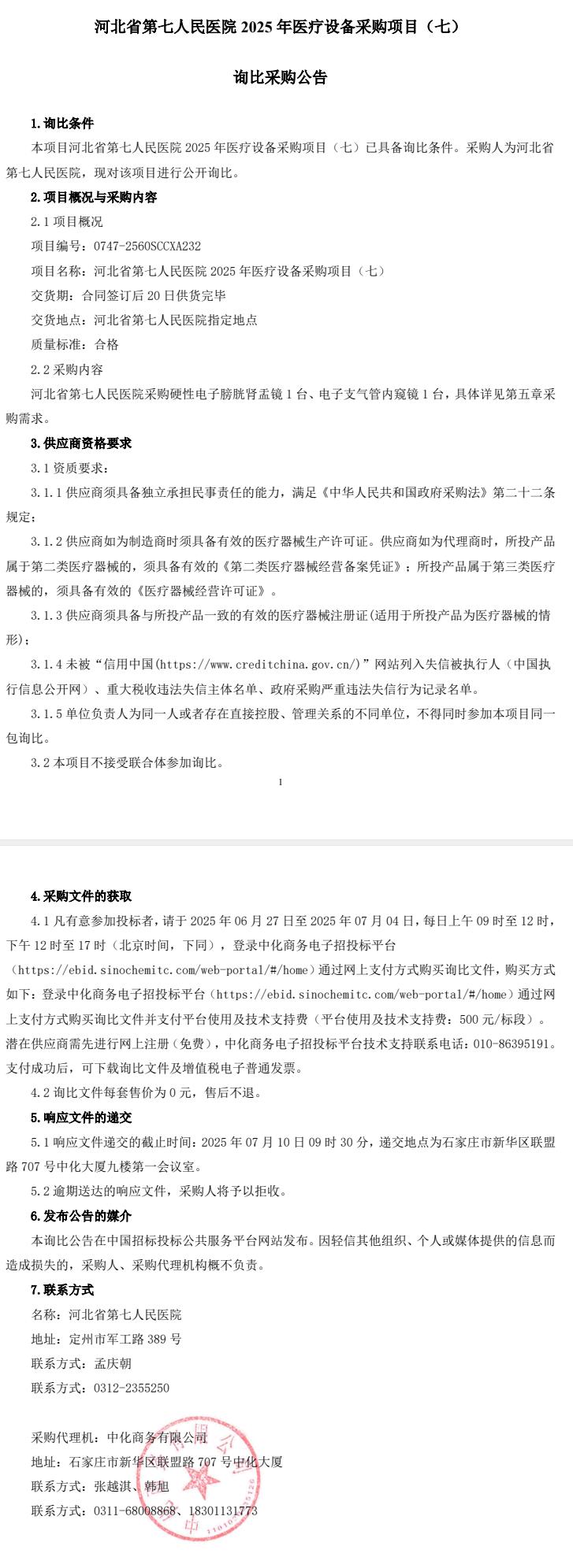 > 医院动态 > 2025年医疗设备采购项目(七)询比采购公告