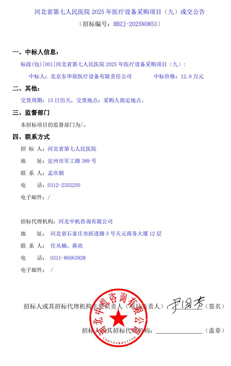 > 医院动态 > 2025年医疗设备采购项目(九)成交公告