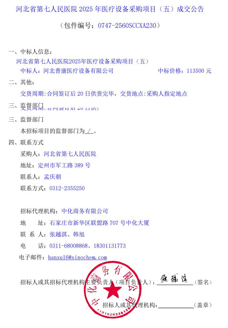 > 医院动态 > 2025年医疗设备采购项目(五)成交公告