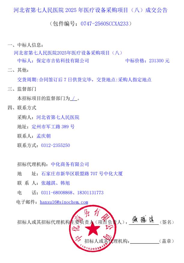 > 医院动态 > 2025年医疗设备采购项目(八)成交公告