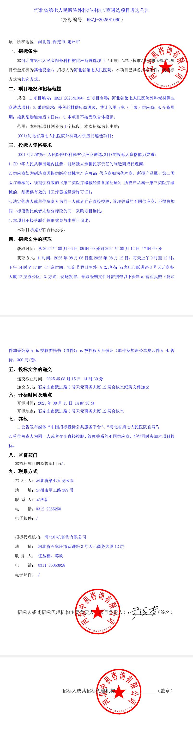 外科耗材供应商遴选项目遴选公告