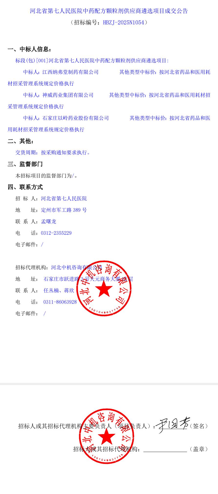 > 医院动态 > 中药配方颗粒剂供应商遴选项目成交公告