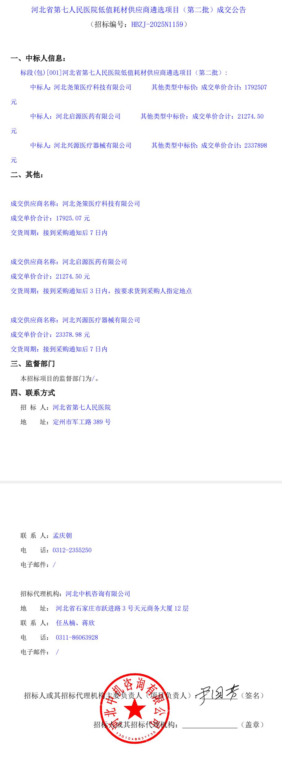 > 医院动态 > 低值耗材供应商遴选项目(第二批)成交公告