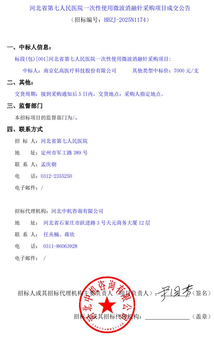 > 医院动态 > 一次性使用微波消融针采购项目成交公告