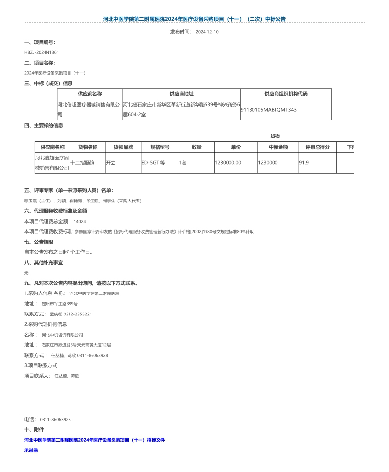 2024年医疗设备采购项目(十一)(二次)中标公告