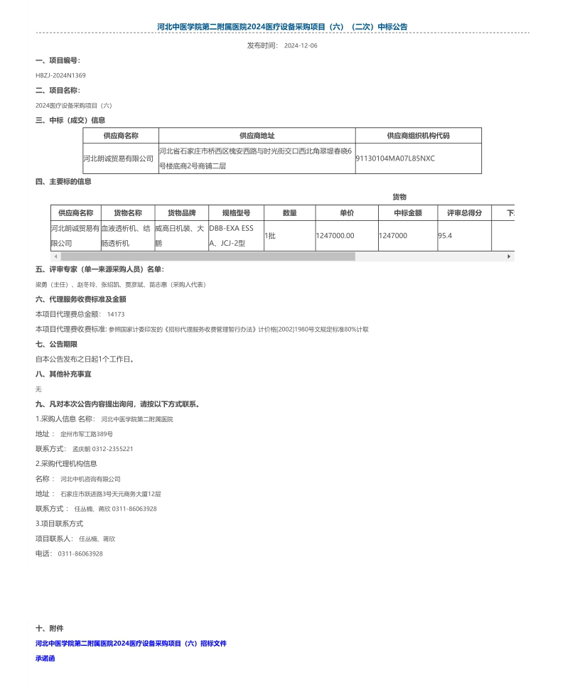 2024年医疗设备采购项目(六)(二次)中标公告