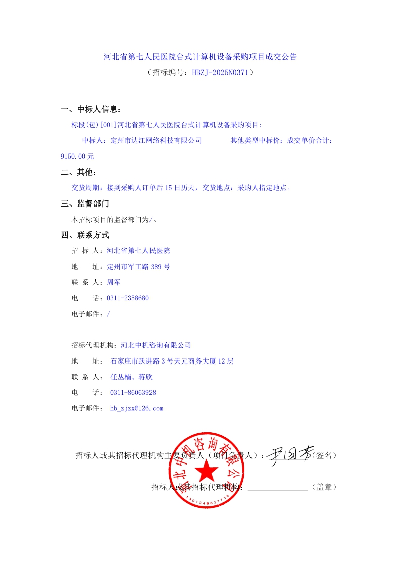 台式计算机设备采购项目成交公告