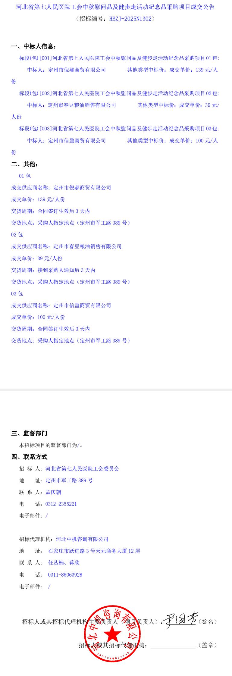 工会中秋慰问品及健步走活动纪念品采购项目成交公告