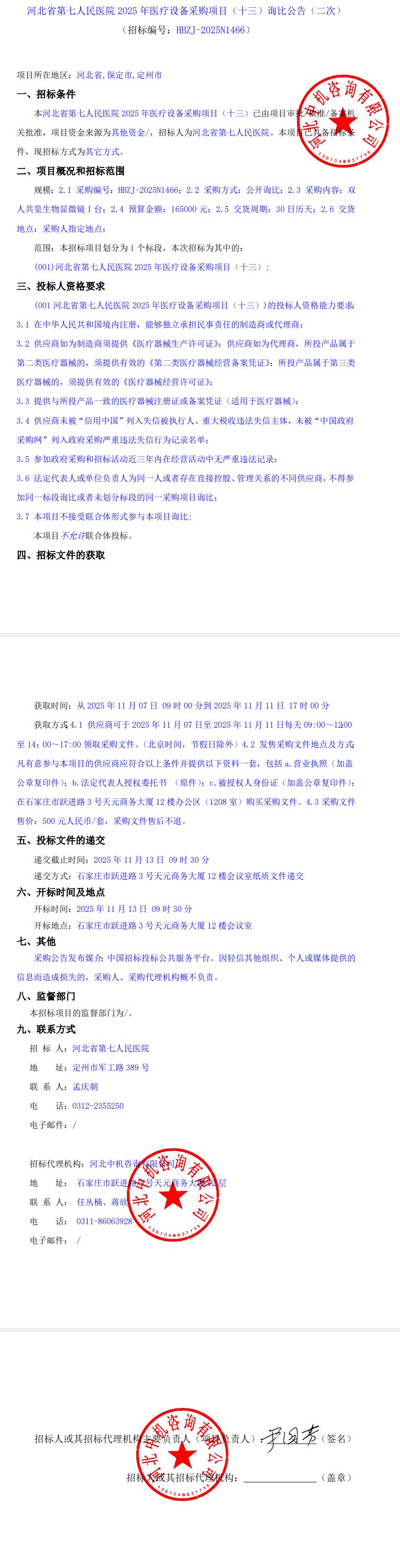 2025年医疗设备采购项目(十三)询比公告(二次)