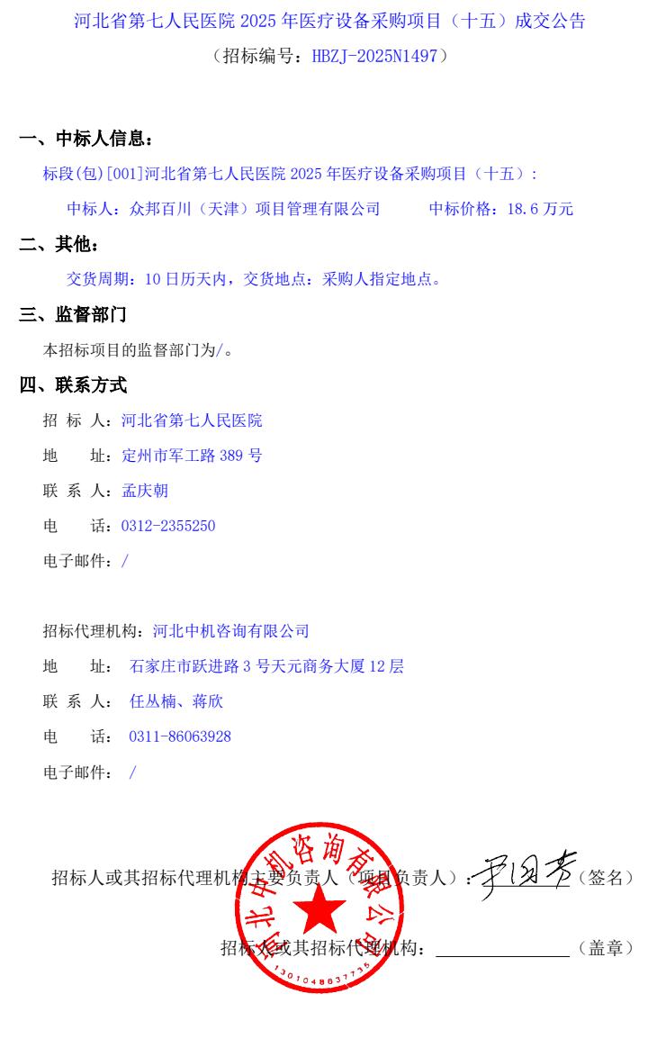 > 医院动态 > 2025年医疗设备采购项目(十五)成交公告