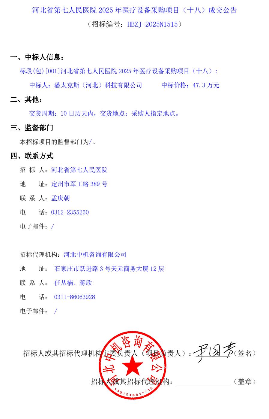 > 医院动态 > 2025年医疗设备采购项目(十八)成交公告
