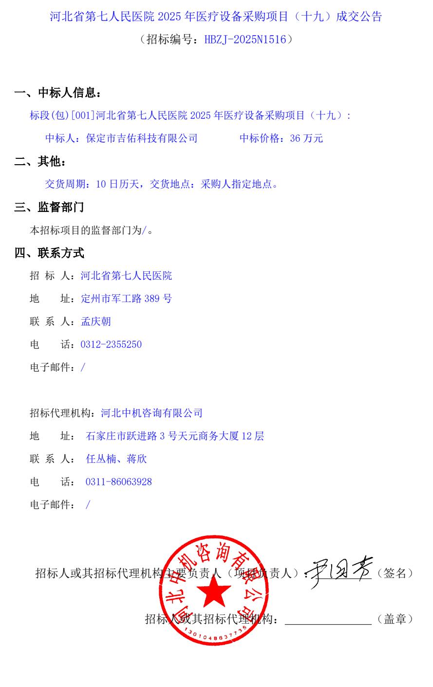 > 医院动态 > 2025年医疗设备采购项目(十九)成交公告