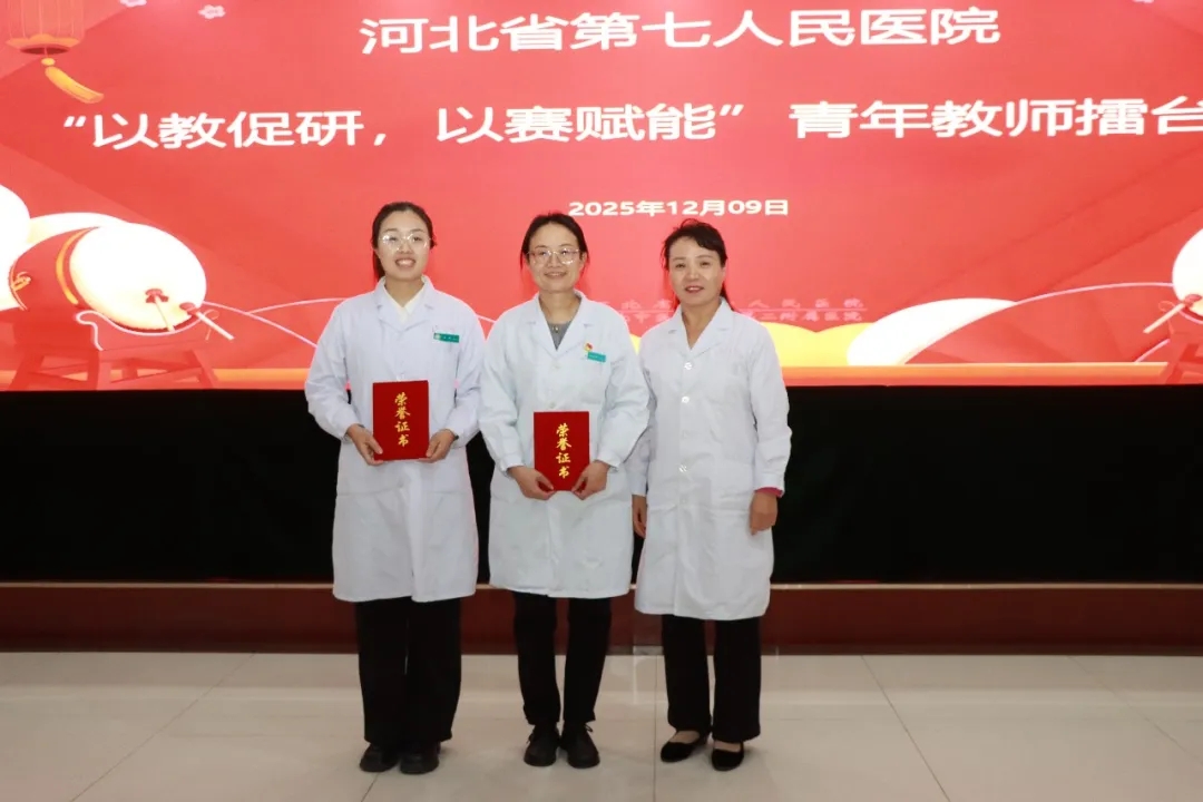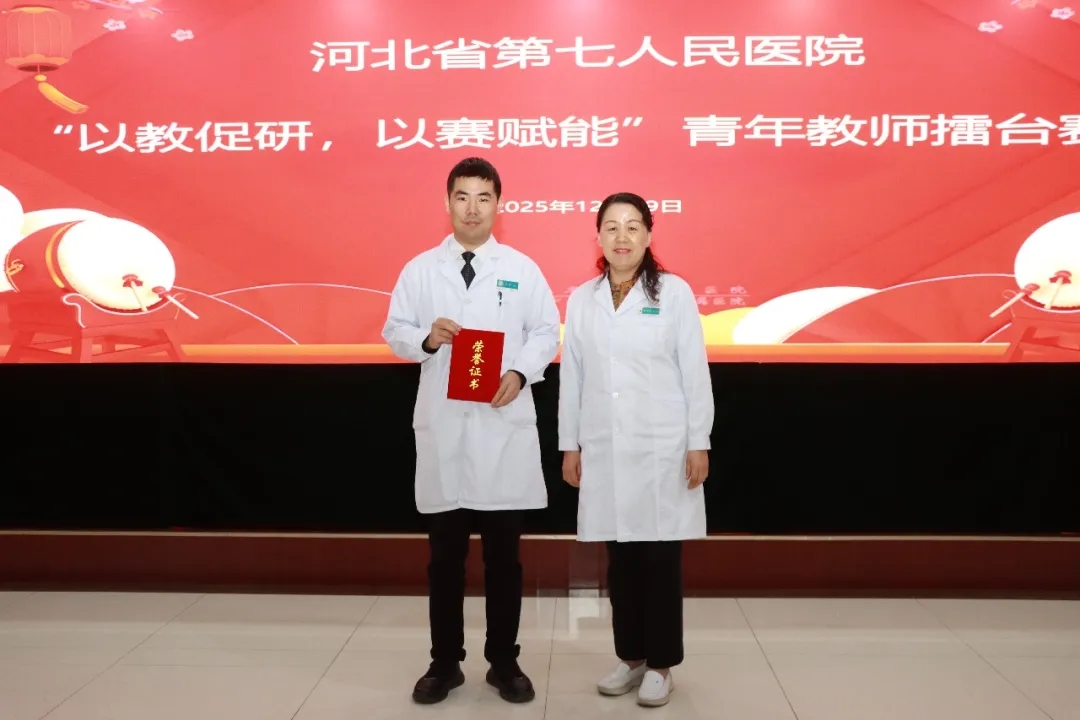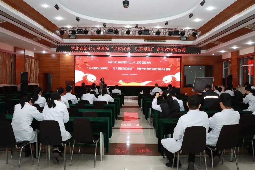 为搭建青年教师教学切磋、互学共进的优质平台,发掘教学骨干力量、蓄力更高层级教学赛事,12月9日,河北省第七人民医院“以教促研,以赛赋能”青年教师擂台赛在院内精彩举办。本次比赛设置教学创新设计与教学演示两大环节,其中教学创新设计占总成绩的30%,教学演示占总成绩的70%,7位专业评委全程聚焦两大环节精准打分,22位青年教师同台竞技,全方位展现教学硬实力。.jpg)