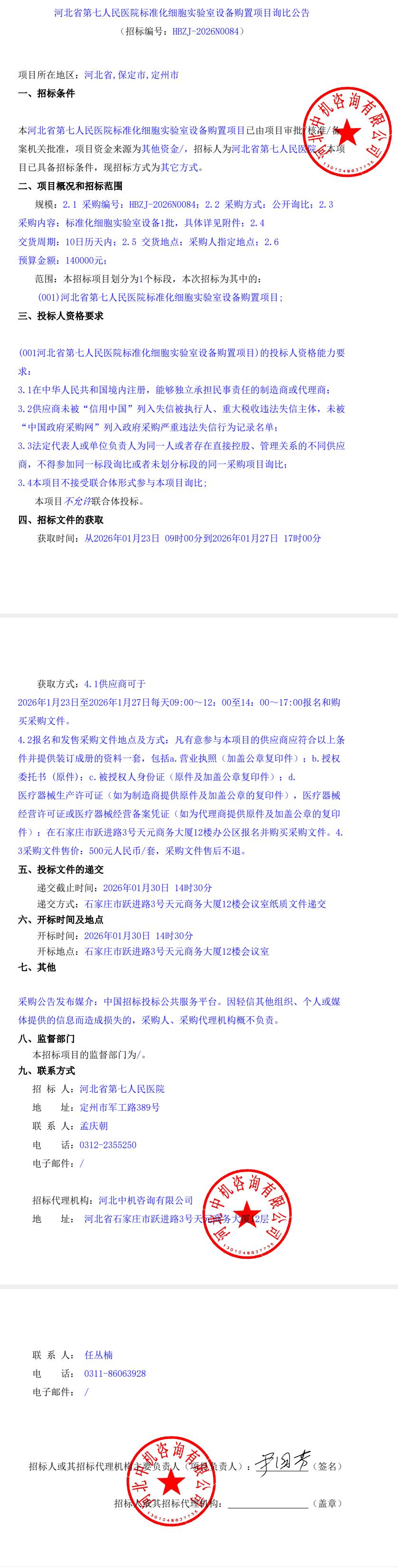 > 医院动态 > 标准化细胞实验室设备购置项目询比公告