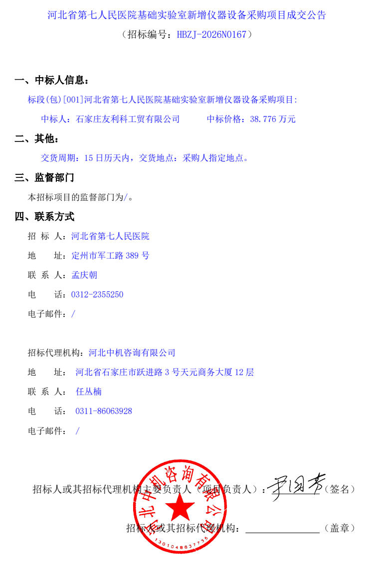 > 医院动态 > 基础实验室新增仪器设备采购项目成交公告