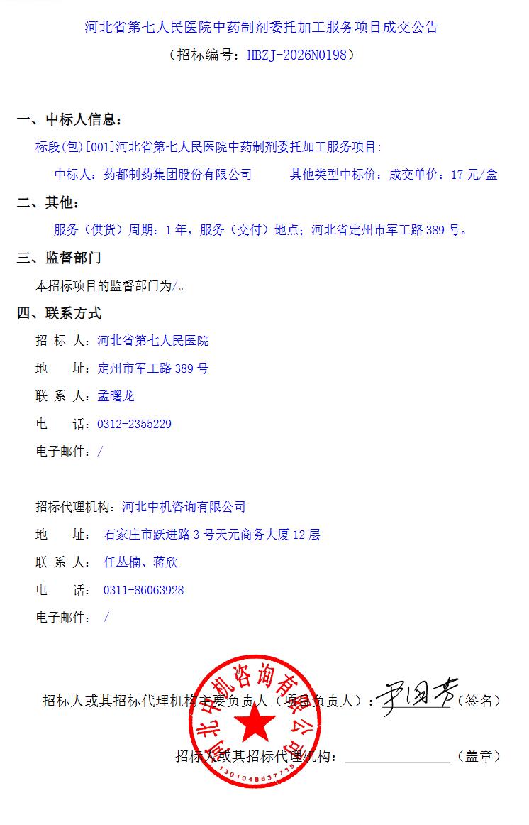 > 医院动态 > 中药制剂委托加工服务项目成交公告