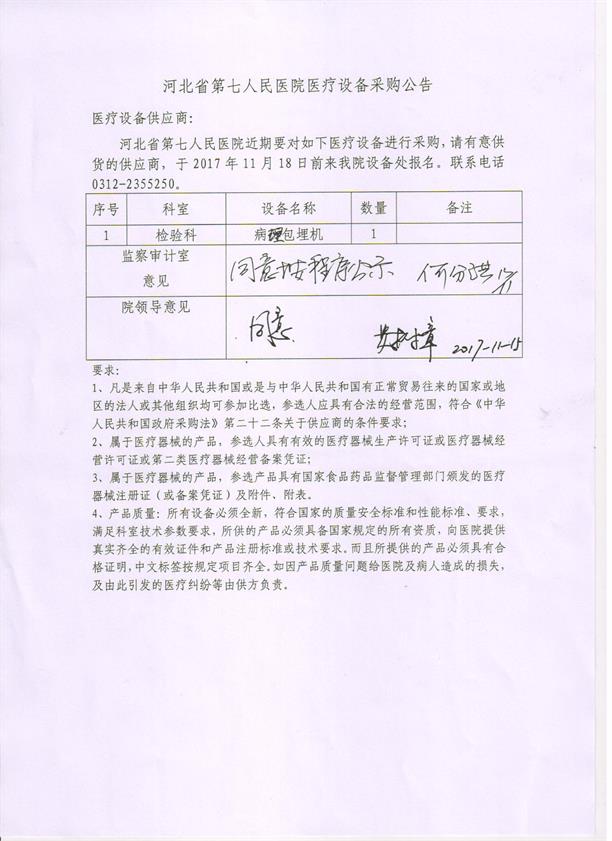 河北省第七人民医院医疗设备采购公告