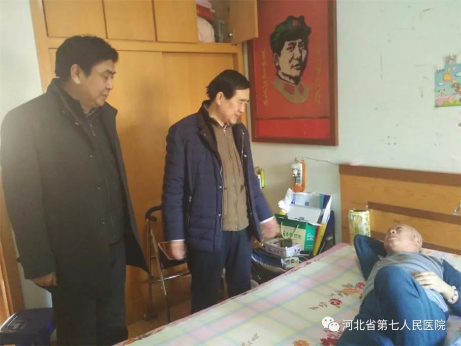 在新春佳节来临之际,2月13日,我院院长安树章带领工会、党办、妇委会等一行5人到保定、定州走访慰问了医院离退休老干部、老领导、困难职工及患病职工等9名同志,并为他们送去了大米、小米、油等生活用品,送去了党的关怀和温暖。
