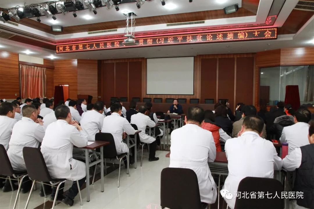 根据省扶贫开发和脱贫工作领导小组《关于深入学习贯彻<习近平扶贫论述摘编>的通知》及省卫生健康委办公室要求,我院立即开展行动,认真组织贯彻落实。 ★ 1月4日下午2:10,在医院职工之家会议室,我院召开学习贯彻《习近平扶贫论述摘编》大会,会议由党委书记杨永利同志主持,全院中层以上领导干部参加。 会上,杨永利结合自身扶贫的亲身经历,为全院中层领导干部上了一堂生动的扶贫教育课。 杨永利指出:到2020年全面建成小康社会,是我党对全国人民的庄严承诺,目前到了脱贫攻坚的关键时刻,全院领导干部要提高政治站位,坚决贯彻落实,无条件的、不折不扣的执行扶贫工作任务。每一位帮扶责任人都要熟悉掌握扶贫政策,切实了解帮扶人的实际情况,为他们谋划致富项目,帮助他们走上脱贫之路。杨永利还结合自身在望都县姜庄一年多的扶贫经历,鼓励大家要开拓思路、树立信心,共同打赢扶贫攻坚战。 最后,杨永利带领大家共同学习了《习近平扶贫论述摘编》的部分章节,并要求各位中层领导干部,会后要认真开展自学,利用网络资源,经常性、深入进行学习,并结合自身工作实际,认真贯彻落实。 .jpg)