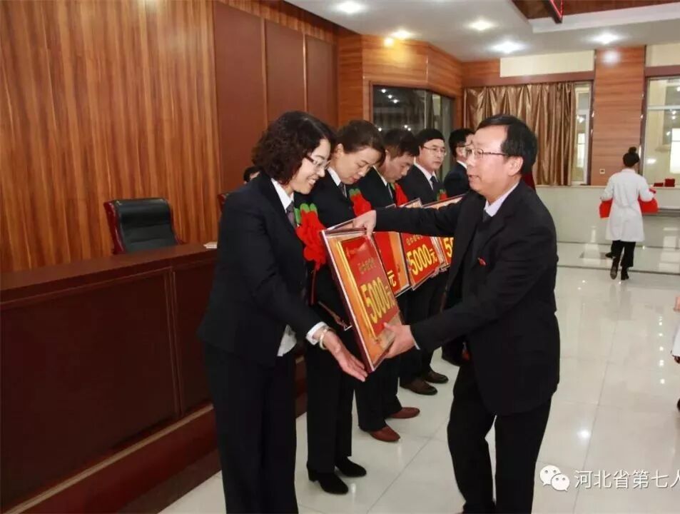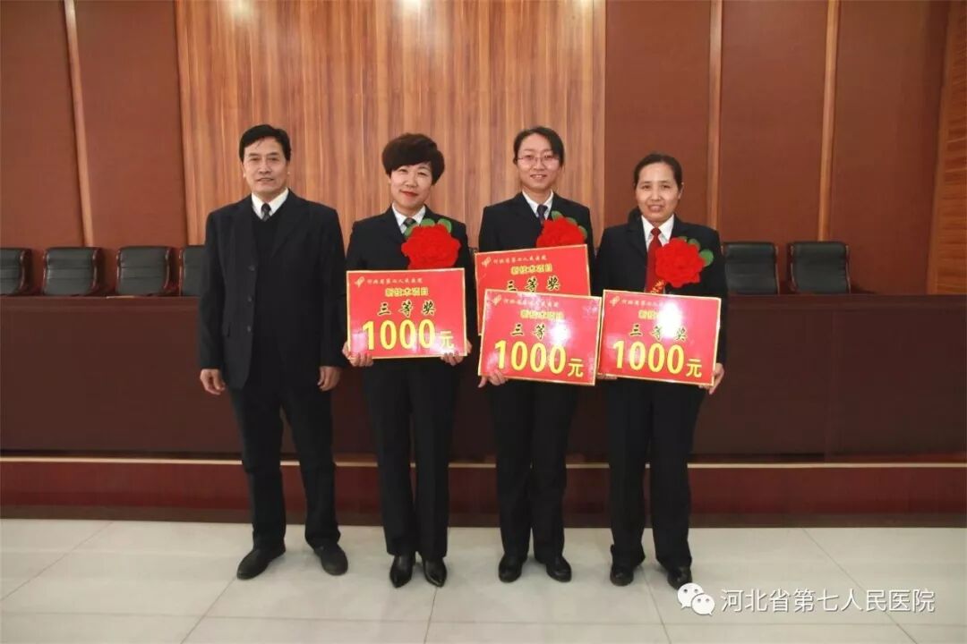 2月18日下午,我院召开了2018年度总结表彰大会。院长安树章、党委书记杨永利、副院长任志学出席会议。 大会由任志学同志主持,杨永利同志宣读《关于对2018年度先进科室、先进个人表彰的决定》。 颁 奖 先进科室 安树章同志为儿科、呼吸内科、内分泌科、神经内二科、检验科5个先进科室颁奖; 最和谐科室 杨永利同志为心内科、手麻科、急诊科、医务处、宣传处5个最和谐科室颁奖; 优秀管理工作者 安树章同志为张玉柱、任红伟(男)、郑亚珍、周兴棉、曹国贞5名优秀管理工作者颁奖; 十佳医师 任志学同志为张文缙、张自豪、刘振丽、王迎春、李铁成、耿伟超、王海龙、胡正权、吴洁琼、任伟曼10名十佳医师颁奖; 十佳护士 安树章同志为李晓云、庞丽、齐月、段巧玲、安广敏、赵娇、任卫宁、付景、刘筱筱、赵静10名十佳护士颁奖; 爱岗敬业标兵 杨永利同志为刘向辉、田春杰、李新功、席敬敏、陈乐乐5名爱岗敬业标兵颁奖; 2018年新技术项目一等奖获得科室——心内科。 2018年新技术项目二等奖获得科室——耳鼻喉科、神经內二科。 2018年新技术项目三等奖获得科室——神经内一科、心内科、放射科。 杨永利同志对三基三严考试成绩前40名人员通报表扬。 理论考试 1、护理前10名: 庞漫 刘焕 李曼 刘冬 李金敏 邢皓洁 田苗 孙亚娟 安广敏 甄英 2、医疗前10名: 张云鹏 魏田静 杨茜芸 吴洁琼 刘晓宇 程晓云 王少伟 郭凤华 常少青 张浩 技能考核 1、护理前10名: 冯娇 赵晓薇 韩瑞敏 张玉 刘静 高力营 边梦凡 李晓云 安广敏 赵媛 2、医疗前10名: 周红梅 杨 娜 高静敏 王慧平 高亚宾 王玉冰 朱小静 杨春静 顾春芳 王朝阳 安树章同志做重要讲话。第一,总结2018年主要工作内容,在军工路持续断交半年的情况下,我们的工作成绩;第二,部署2019年重点工作,制定2019年总体发展目标。 最后,任志学同志对全院职工提出以下几点要求:第一,迅速贯彻落实会议精神;第二,突出抓好当前的各项工作;第三,全力推进各项落实;第四,始终贯彻“以病人为中心”的服务宗旨,转变工作作风,强化工作责任,促进医院持续健康发展。 .jpg)